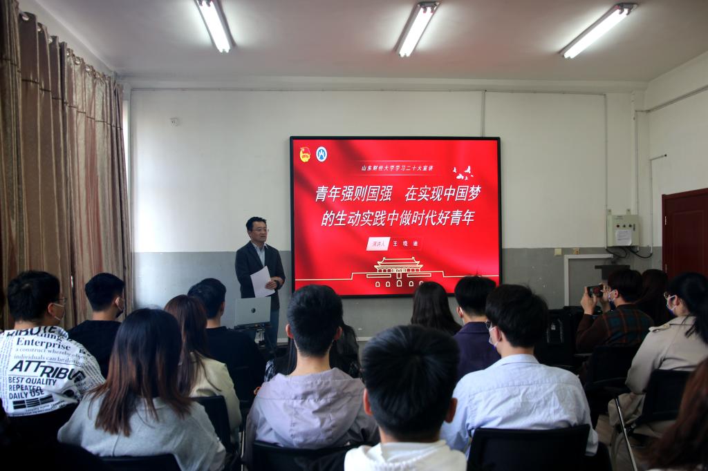 报告中,王晓迪从解释“青年兴则国家兴,青年强则国家强”出发,引导广大青年要争做信仰坚定的有志青年,争做永葆初心的有为青年,争做新时代奋斗青年。并结合共青团工作,围绕“当代青年如何筑立坚定理想信念”、“当代青年如何践行使命担当”展开论述。他认为,青年的理想信念关乎国家未来,迈入新时代,青年更应以服务人民为宗旨,把个人理想奋斗融入党和人民的共同理想和奋斗中,坚定不移听党话、跟党走,从内心深处厚植对党的信赖,对马克思主义的信仰,高举中国特色社会主义的伟大旗帜,忠实履行好党和人民赋予的新时代使命任务,向着第二个百年奋斗目标前进。他强调,一代人有一代人的使命,一代人有一代人的担当,青年站在新的起点要树立正确的世界观、人生观、价值观。最后他鼓励新时代青年要牢记党的教诲,立志民族复兴,不负韶华,不负时代,不负人民,昂首阔步踏上新征程,为全面建设社会主义现代化国家、全面推进中华民族伟大复兴而不懈奋斗。