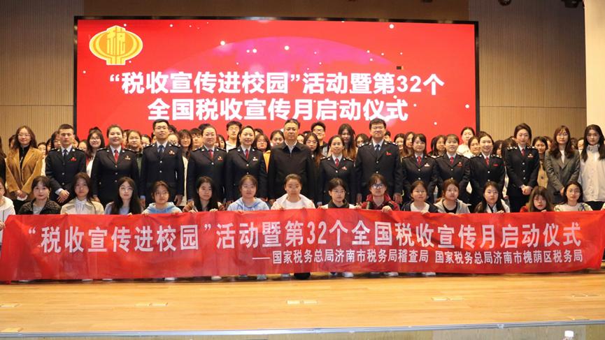 3月28日上午,财政税务学院“税收宣传进校园”活动暨第32个全国税收宣传月启动仪式于圣井校区文体中心大礼堂圆满举行。本次活动由财政税务学院主办。济南市税务局稽查局副局长丁晓燕,槐荫区税务局党委委员、副局长乔斐,财政税务学院党委副书记张代宝出席。财政税务学院党委组织员李子云主持。济南市税务局稽查局、槐荫区税务局相关人员和学生代表参加了此次活动。