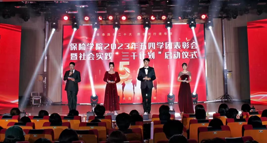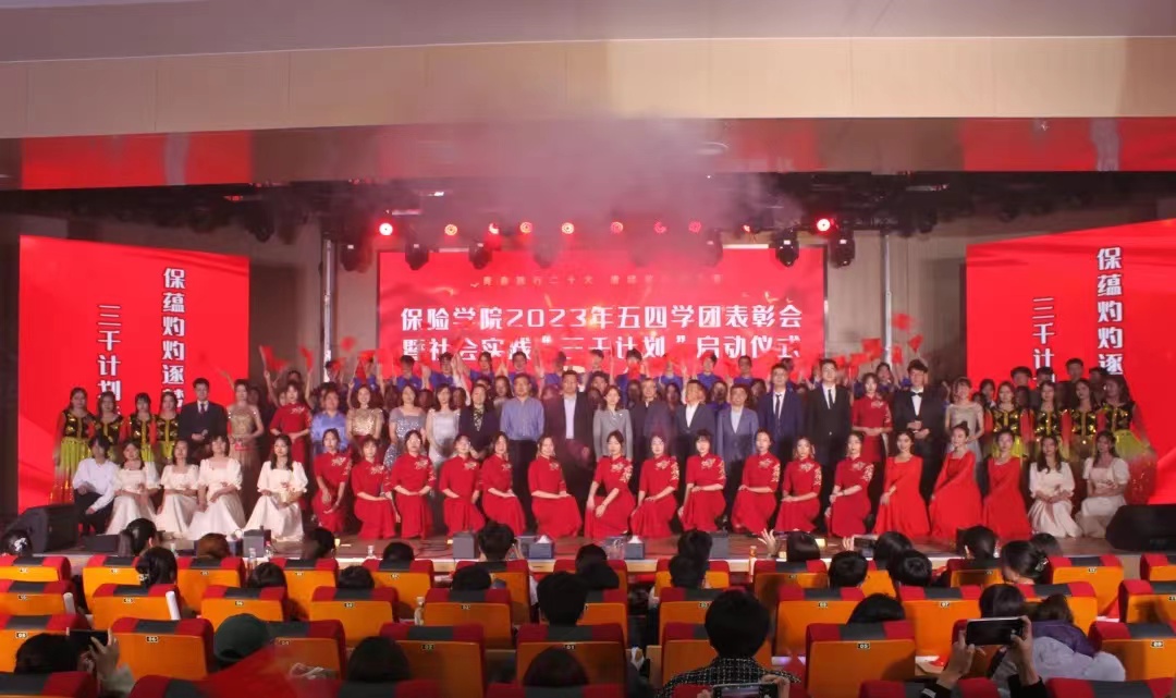 4月23日下午,保险学院2023年五四学团表彰会暨社会实践“三干计划”启动仪式在圣井校区文体中心举行。圣井校区管理办公室党委书记高峰、校团委副书记谷学峰、党委学生工作部、学生工作处副处长刘思锋、保险学院班子成员、全体辅导员、教师代表出席本次表彰会。