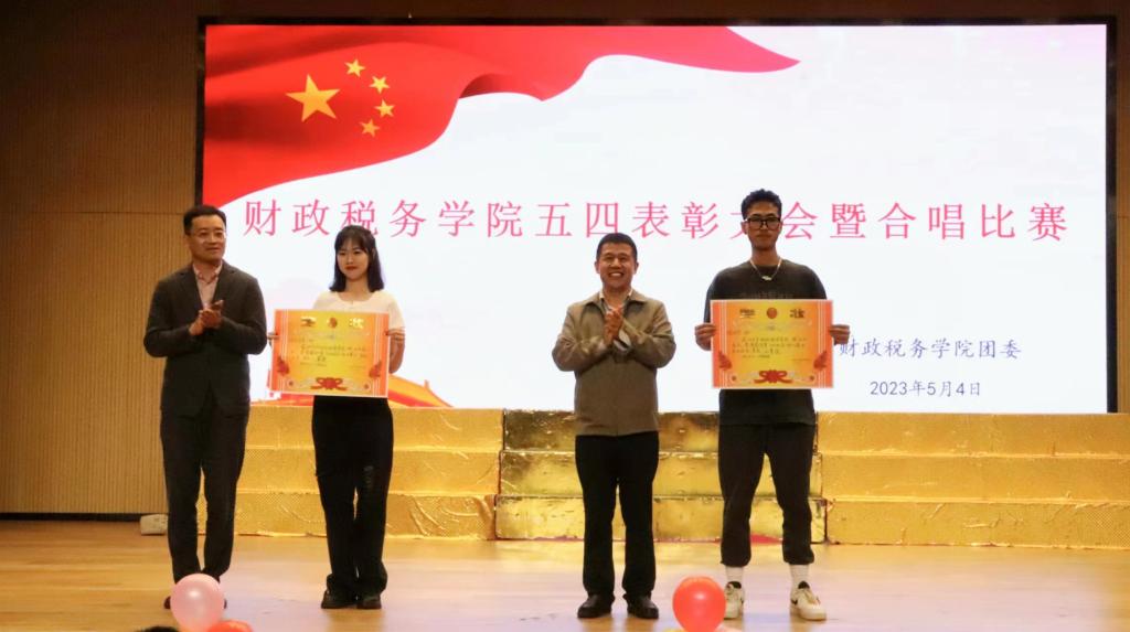 传五四薪火,赴青春之约。在合唱比赛的舞台,昂扬的歌声响彻四方,青春的旋律谱写华章。台上同学们着装整齐、饱含激情,大家的歌声或婉转,或激扬,或振奋,或高亢,或温婉。各班合唱曲目由校歌加自选歌曲组成,尽情展示班级创意。《梦想花开》《倔强》《星辰大海》等一首首展现青春风貌的歌曲展示了财税青年对青春的赞颂,对党和祖国的无限热爱。财政税务学院艺术团成员也带来了歌曲《日不落》,将整场比赛推向了高潮。经过激烈角逐,2022级税收学二班荣获一等奖,2022级税收学一班、2022级财政学类一班荣获二等奖,2022级财政学类二班、2022级财政学类三班、2022级财政学类四班、2022级财政学类五班荣获三等奖。2022级税收学二班沈明昕荣获最佳指挥奖。