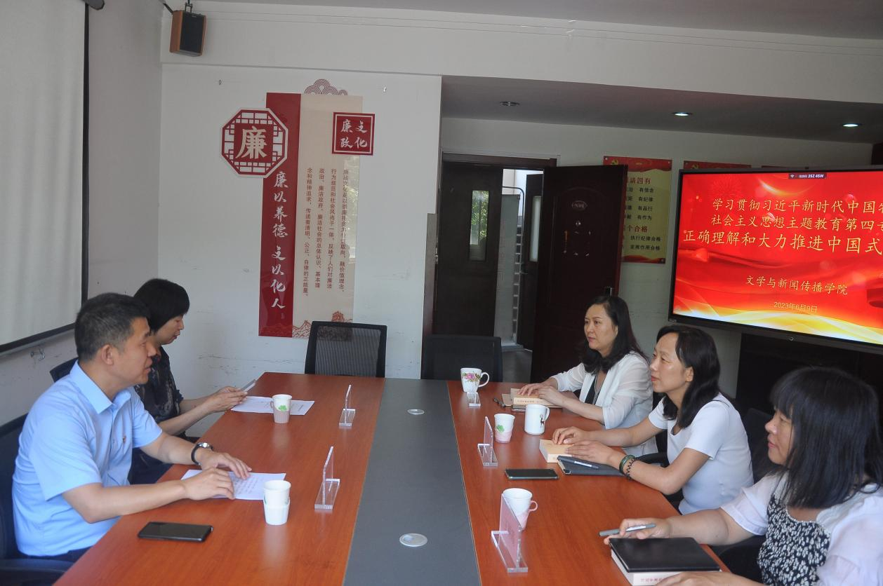 6月8日-9日,文学与新闻传播学院党委理论中心组举行学习贯彻习近平新时代中国特色社会主义思想主题教育(第四专题)集体学习。