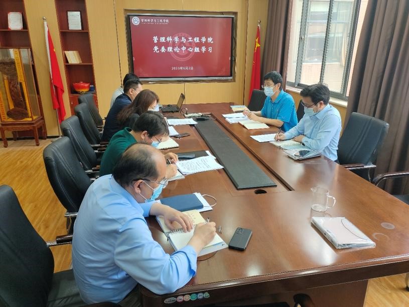 近日,管理科学与工程学院党委理论学习中心组在逸夫楼514会议室开展集中学习,深入学习研讨“习近平总书记在中共中央政治局第五次集体学习时的重要讲话”。会议由学院党委书记徐世星主持,学院党委理论学习中心组成员参加学习,副院长马建华列席。