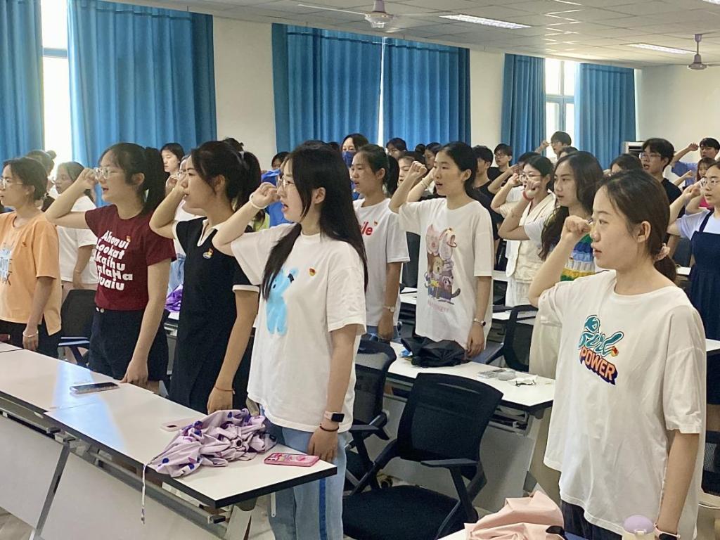 圣井校区举行“庆七一”师生党员集体宣誓,新党员进行入党宣誓,老党员重温入党誓词。同志们右手握拳、高举过耳,庄严宣誓,用铮铮誓言表达不忘初心、砥砺奋进的信念和意志,进一步坚定了为共产主义奋斗终身的决心,力争做社会主义事业的建设者和接班人。