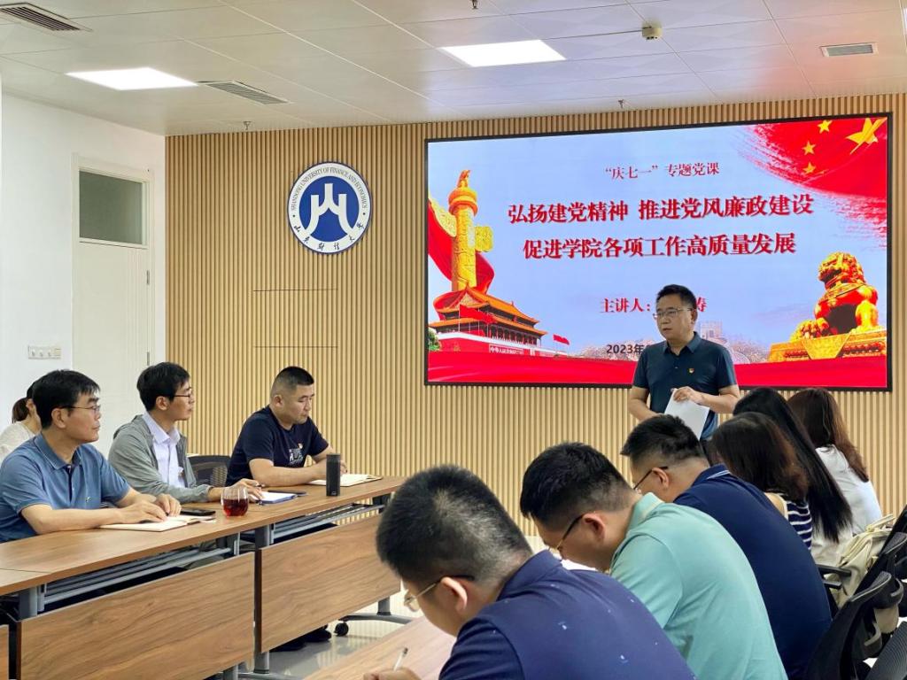 党委书记邵文涛在燕山校区Y410教室为党委委员、全体党支部书记、师生党员代表讲授党史专题党课《弘扬建党精神 推进党风廉政建设 促进学院各项工作高质量发展》。邵文涛以“坚持真理、坚守理想,践行初心、担当使命,不怕牺牲、英勇斗争,对党忠诚、不负人民”的伟大建党精神引入主题,介绍了中国共产党的诞生,明确了跳出历史周期率的新时代答案。邵文涛强调,学院要抓好党风廉政建设,一是加强理论学习,学习贯彻党的二十大精神,学深悟透习近平新时代中国特色社会主义思想;二是发挥党委在推动改革和学院发展中的统筹作用,加强党委对学院发展的整体把关作用;三是落实立德树人根本任务,加强课程思政建设,提升人才培养质量;四是加强师德师风建设,牢牢把握意识形态工作的领导权,坚持党建引领,促进学院各项工作高质量开展。