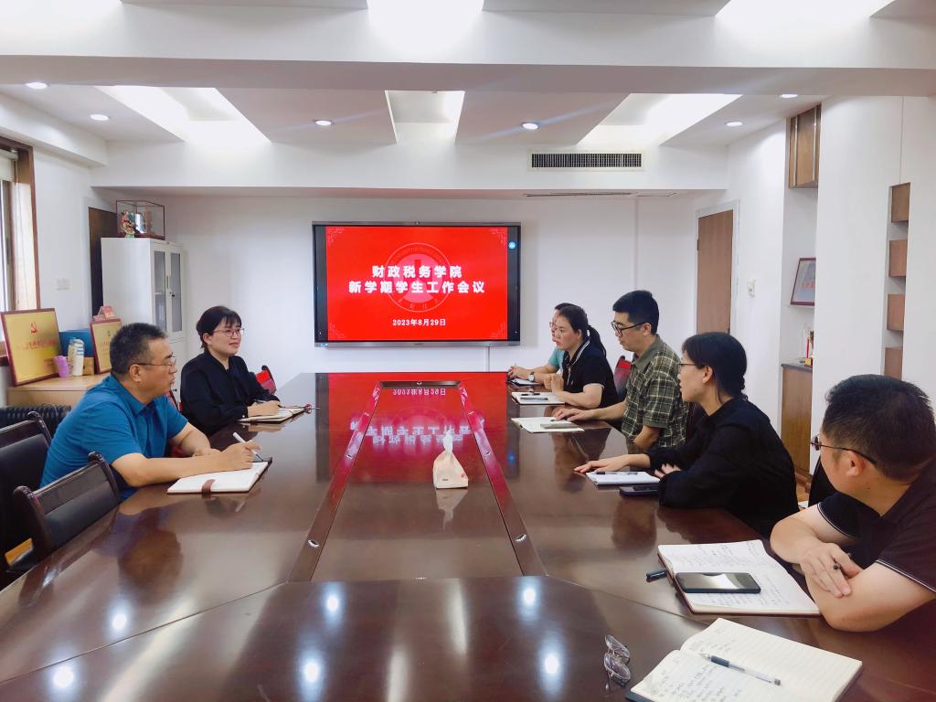 8月29日下午,财政税务学院召开新学期学生工作会议,研究部署新学期学生工作。会议由学院党委副书记张代宝、滕晖出席并讲话,全体辅导员老师参加。