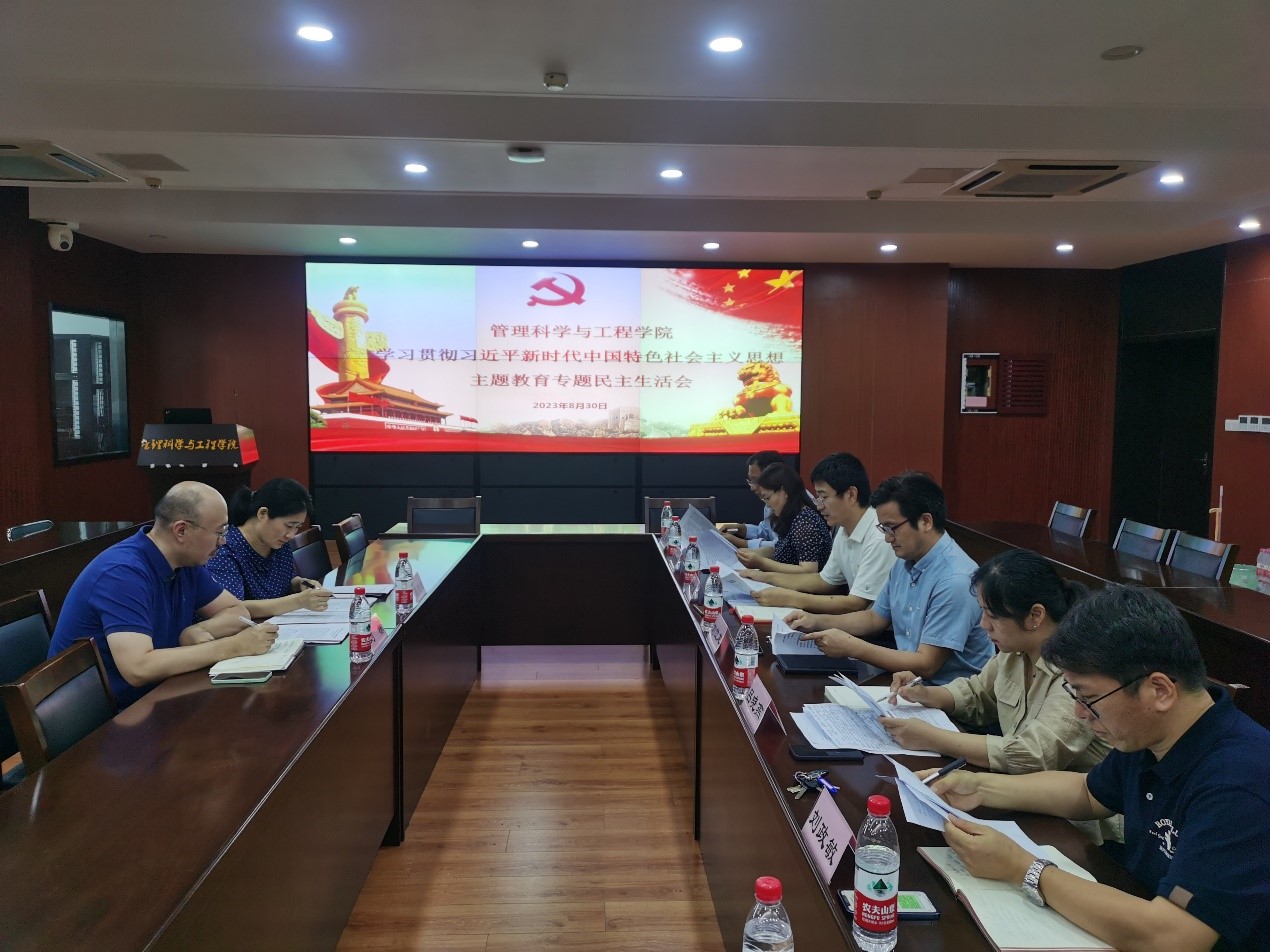 8月30日下午,管理科学与工程学院党委于燕山校区逸夫楼621会议室召开主题教育专题民主生活会。学校党委宣传部副部长张艳霞,工会信息宣传科刘栋,学院党委全体成员参加会议。会议由学院党委书记徐世星主持。