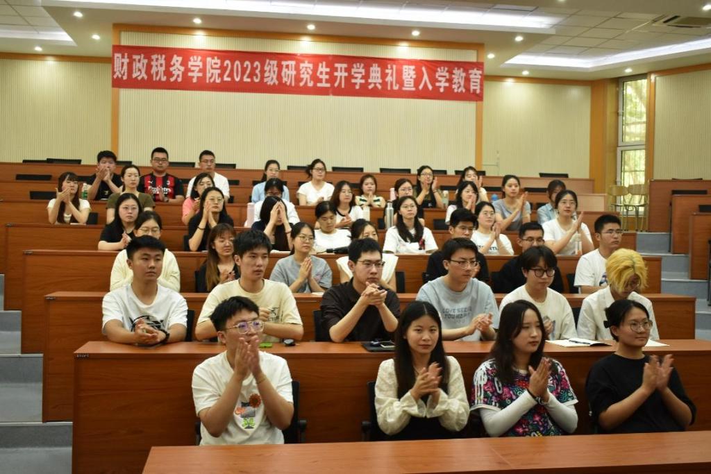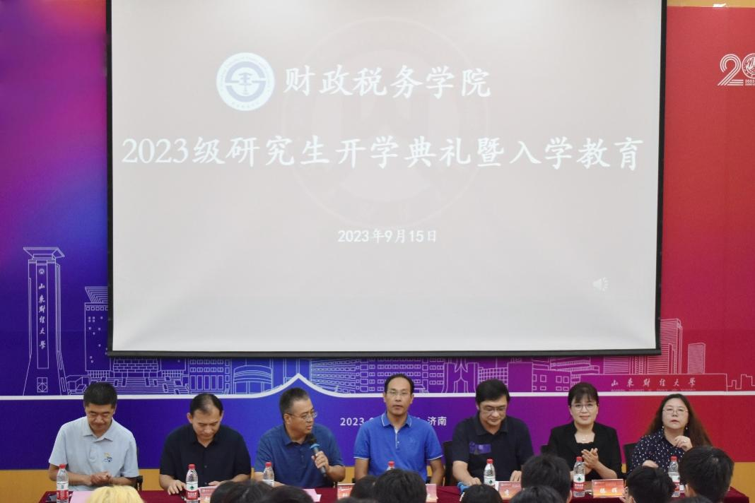 9月15日下午,财政税务学院2023级研究生开学典礼暨入学教育大会在舜耕校区第三阶梯教室圆满举行。财政税务学院党委书记刘波,院长李森,党委副书记张代宝、滕晖,副院长赵宝廷,团委书记、研究生辅导员王正一,导师代表高凤勤出席会议,2023级全体研究生及部分在校生代表参加了会议。本次会议由张代宝主持。