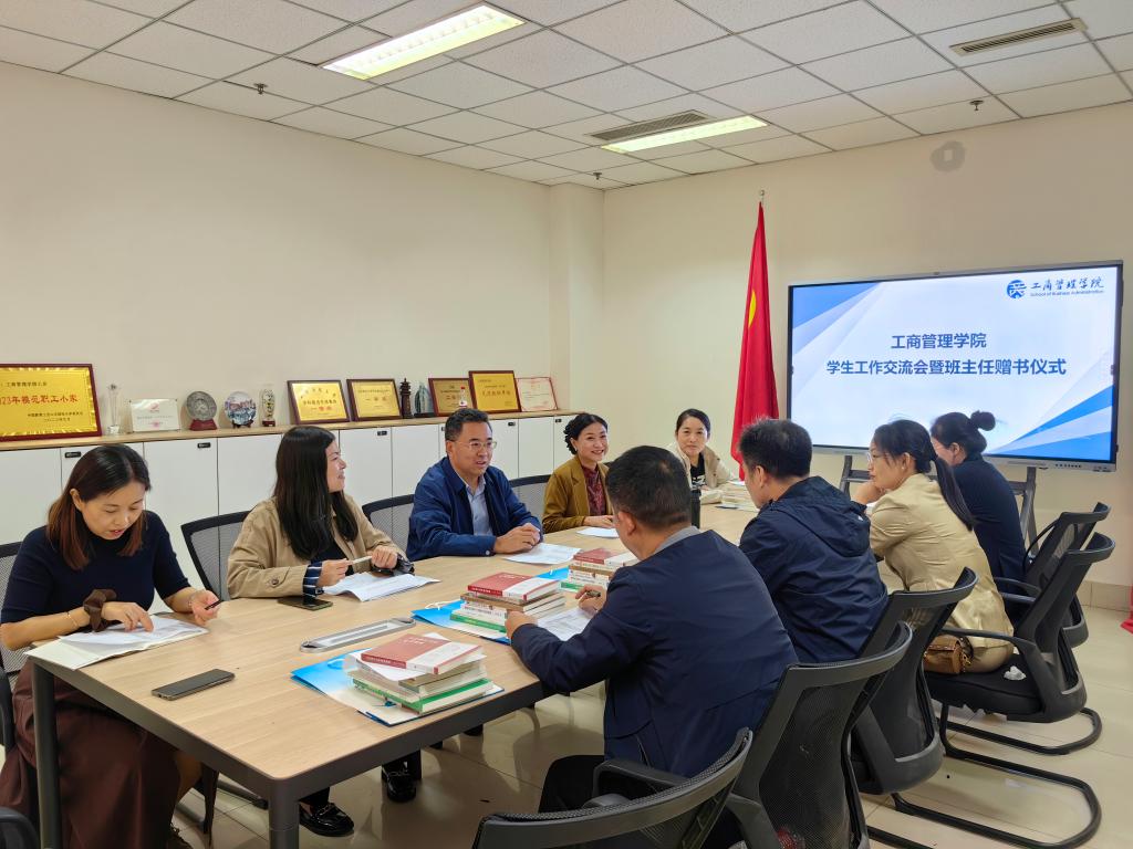 10月13日,工商管理学院在燕山校区逸夫楼207会议室举办了学生工作交流会暨班主任赠书仪式,学院党委书记赵世民、副书记彭艳红,侯昭瑾、学院辅导员、班主任老师参加会议。交流会由学工办主任陈盈君主持。