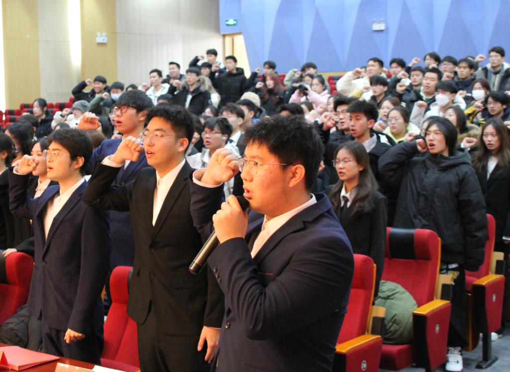 学生干部代表常子尧带领全体学生干部庄严宣誓,表示将秉持公平公正的原则,诚信应考,并倡议所有同学共同遵守考试纪律,不抄袭不作弊,以良好考风引领带动良好学风。