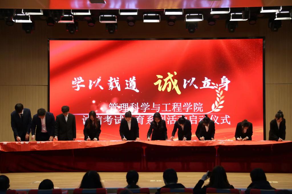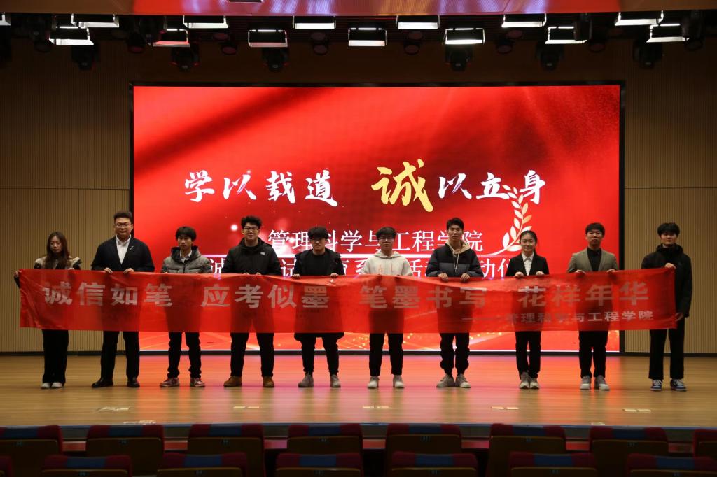 12月22日,管理科学与工程学院“学以载道,诚以立身”诚信考试教育系列活动启动仪式在圣井校区大学生活动中心举行。学院党委书记徐世星,副书记吕晓燕及全体辅导员出席启动仪式, 2021、2022、2023级全体班委、团支部委员及学生会干部参加。仪式由学院就业办主任孙智凝主持。