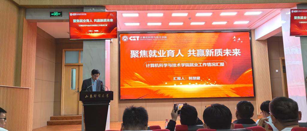会上,学院院长韩慧健做题为《聚焦就业育人 共赢新质未来》的学院就业工作情况汇报。从“学院基本情况”,“党建融合、协同创新聚合力”和“数智赋能、双轮驱动向未来”三个方面介绍学院就业工作经验做法。他指出学院以“三全育人”为目标,将学生就业工作摆在突出位置,构建了“五个维度”的就业育人体系,通过做好思想引领、强化成长引领、开展精准帮扶、链接多方资源和善用网络平台等多维度,形成了全员参与、全过程、全方位、全覆盖共同促进就业的新局面,打通从学业提升、生涯规划到就业指导的工作推进全链条。