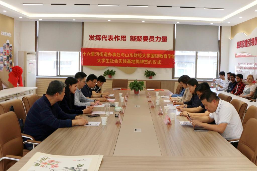 5月10日上午,十六里河街道秀和社区与国际教育学院举行大学生社会实践基地揭牌签约仪式。共青团济南市市中区委副书记王豪,山东财经大学团委副书记谷学峰,十六里河街道党工委副书记、政法委员、总工会主席赵书广,山东财经大学国际教育学院党委书记张红燕、院长齐杨出席活动。国际教育学院师生代表、秀和社区相关领导干部等参与活动。活动由十六里河街道秀和社区综合党委书记李娜主持。