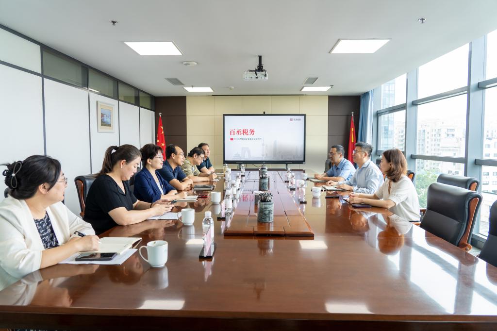 百丞税务董事长朱自永对财政税务学院一行表示热烈欢迎。刘波对百丞税务多年来对学院学生培养和就业工作给予的支持表示衷心感谢,全面介绍了学校与学院对校企合作工作的思路、任务和要求等,详细了解了企业的用人意见反馈,并希望双方在已有合作基础上加强在学生竞赛和学术研究等多方面的合作,不断提升学生就业竞争力。李森回顾了双方在税收学(税务师方向)专业开展校企合作办学的历程,介绍了目前学院学科建设和人才培养的基本情况,并详细说明了人才培养方案的修订情况。赵宝廷总结了近年来双方开展合作育人取得的成绩、经验与下一步拟采取的改进措施。滕晖详细介绍了第一届税收学(税务师方向)专业毕业生的就业情况等。百丞税务总经理董华从加强财税基础知识积累和数智课程学习等方面对在校生知识储备和能力培养提出建议。双方围绕专业课程设置、学生综合能力培养、就业岗位提供等进行了热烈讨论。