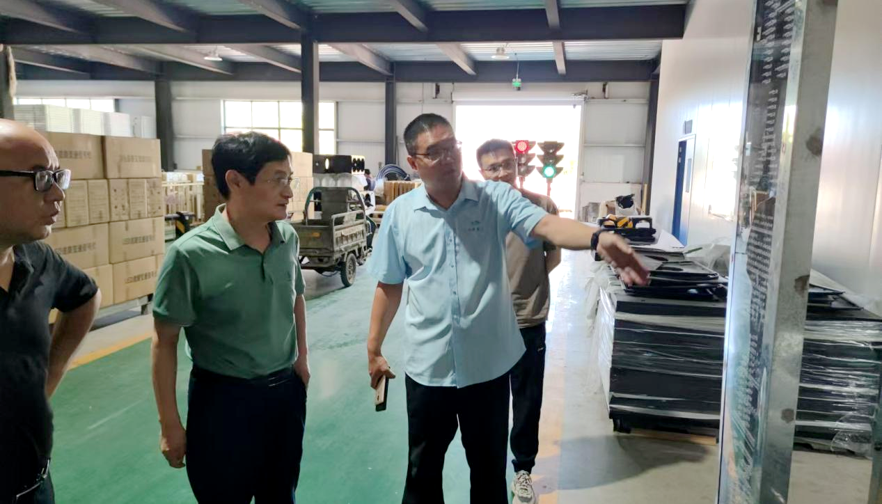 在佳泽交通位于泰安宁阳的生产车间,公司总经理邵军、技术部副部长杜焕刚向大家介绍了公司的主要产品和工艺流程,双方就智慧交通设施软件技术升级和创新进行了交流。