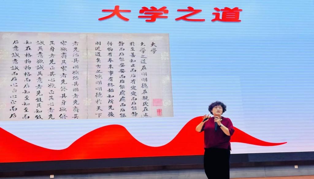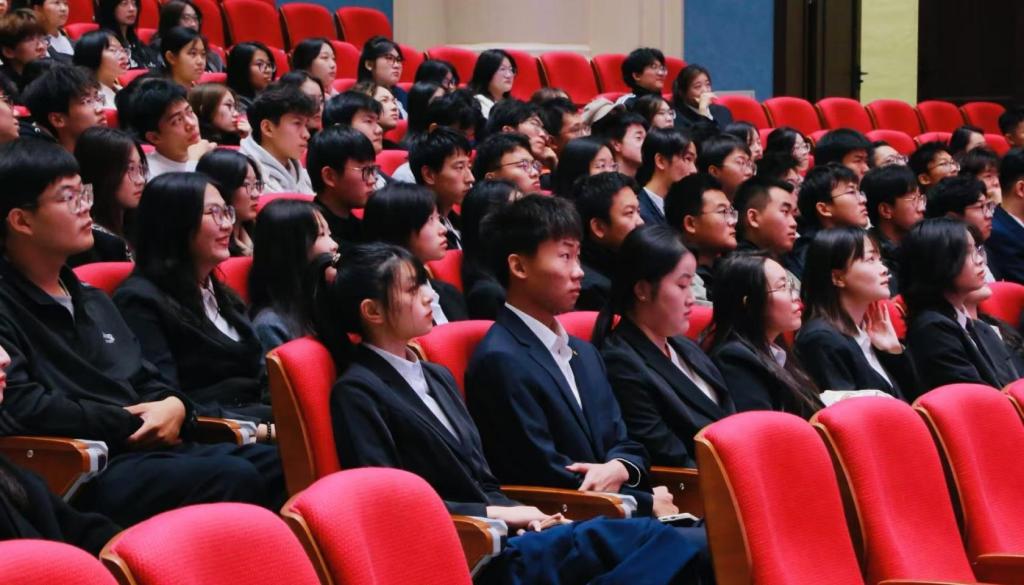 她通过讲述方志敏等一系列鲜活的案例,带领师生们回顾中国共产党成长过程中取得的来之不易的成绩;解读了“大学之道”中蕴含的哲学道理,深入浅出地分析了清廉自律对个人、家庭乃至社会产生的深远意义。她强调,廉洁不仅是一种道德要求,更是一种法律责任,广大青年学生干部要时刻保持清醒头脑,坚决抵制各种诱惑,做到心有所畏、言有所戒、行有所止。作为新时代大学生,尤其是学生干部,应将廉洁意识内化于心、外化于行,让清风正气成为青年一代最鲜明的底色,将廉洁教育融入到学生日常言行之中。她希望同学们做有信仰、讲政治、正能量、有情怀、讲格局、讲奉献、具有引领力的新时代优秀大学生,在自己的岗位上持续发光发热,通过提升理论和参加实践修炼七种“人生境界”——做有爱的人、做爱学习的人、做有品尚美的人、做有激情的人、做有态度的人、做有智慧的人、做乐观的人。