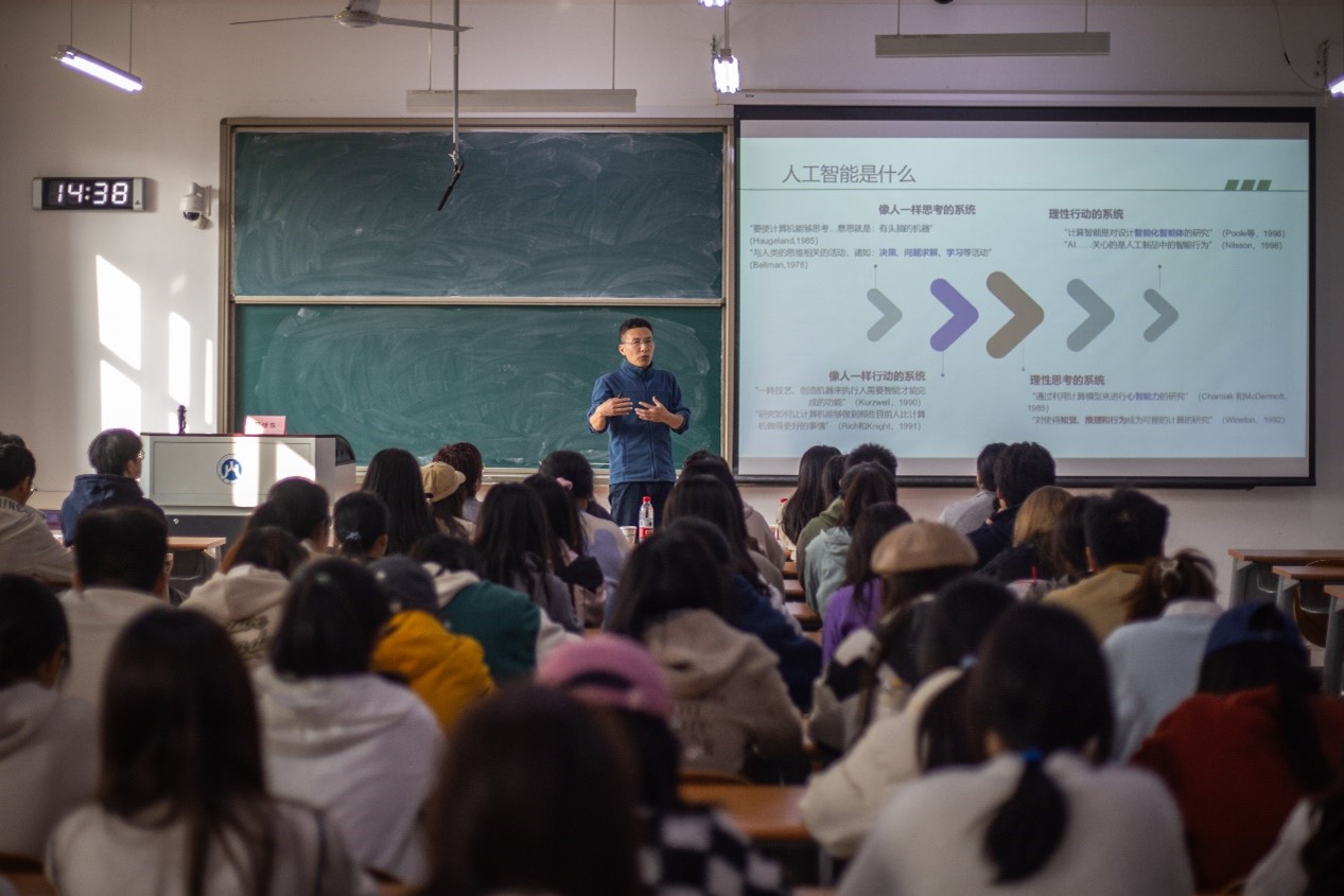 崔东峰在主持报告时指出,人工智能是新时代新质生产力的重要引擎,学校重视教育的数字化转型,推出了人工智能赋能教育教学“421”行动计划,旨在培养符合经济社会发展需求的高水平人才,鼓励同学们主动学习相关知识,强化应用技能,锻炼创新思维,努力成长为具有数字素养和国际视野的复合型人才。