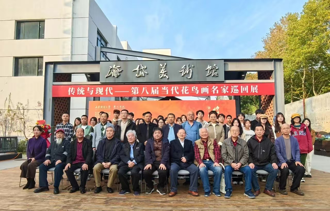 11月1日,传统与现代——第八届当代花鸟画名家巡回展在海岱美术馆隆重开幕。中国美协理事、山东省文联原副主席杨枫出席并宣布展览开幕,中国美术家协会会员、山东美术出版社高级编审郑向农,中国美术家协会会员、青岛美术家协会名誉主席、青岛市中国画学会会长邱振亮,中国美术家协会会员、山东省美术家协会名誉主席曾昭明,滨州画院名誉院长,滨州市美术家协会名誉主席赵先闻,中国当代画派联谊会副主席、山东省美术家协会原副主席何乃磊,齐鲁师范学院教授、山东美术家协会第六届主席团成员赵英水,临沂市美协副主席王纪岭;泰安市书法家协会主席、泰安市美术家协会名誉主席仇东,中国国家画院研究员贾荣志,山东省政协委员 泰安出版小镇总经理曹步云,山东省书画学会副秘书长王承斌,青岛古金缘书画院院长侯廷玄,山东省画廊协会副会长王文祥,山东财经大学党委原副书记赵友春,国井集团济南分公司办事处主任张科,著名书画家王彦鹏、高虎、李超,艺术学院负责人、师生代表参加开幕式。开幕式由《画说收藏》栏目高超主持。