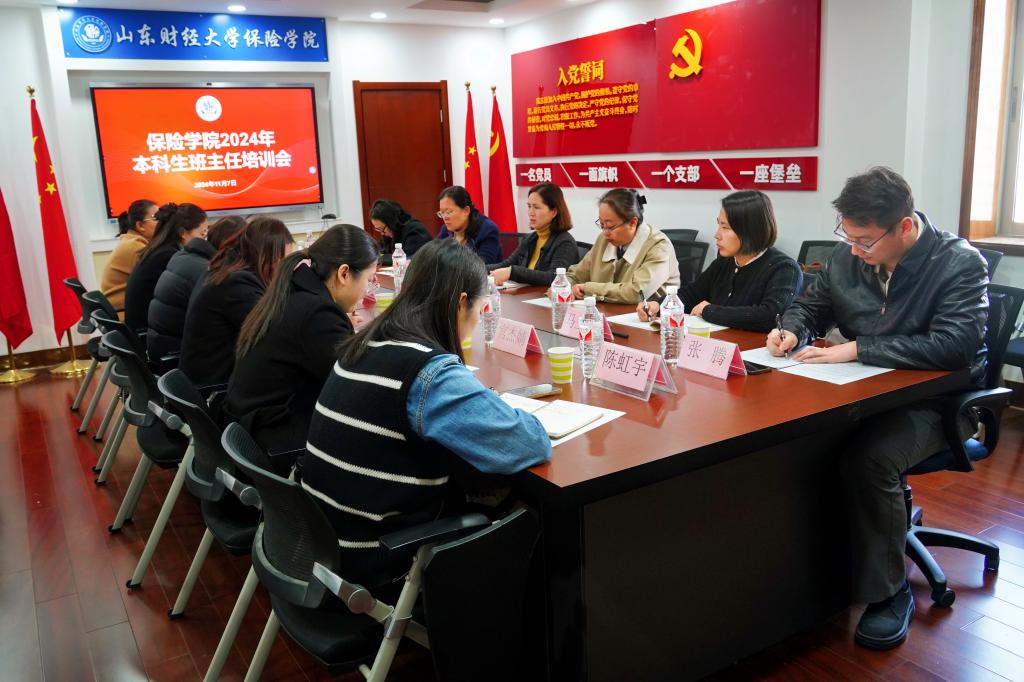 11月7日,保险学院本科生班主任培训会在舜耕校区举行。学院党委书记张娟,校大学生心理咨询中心主任孙丽,学院2023级、2024级本科生班主任及辅导员代表参加会议。会议由学院党委副书记陶晓华主持。