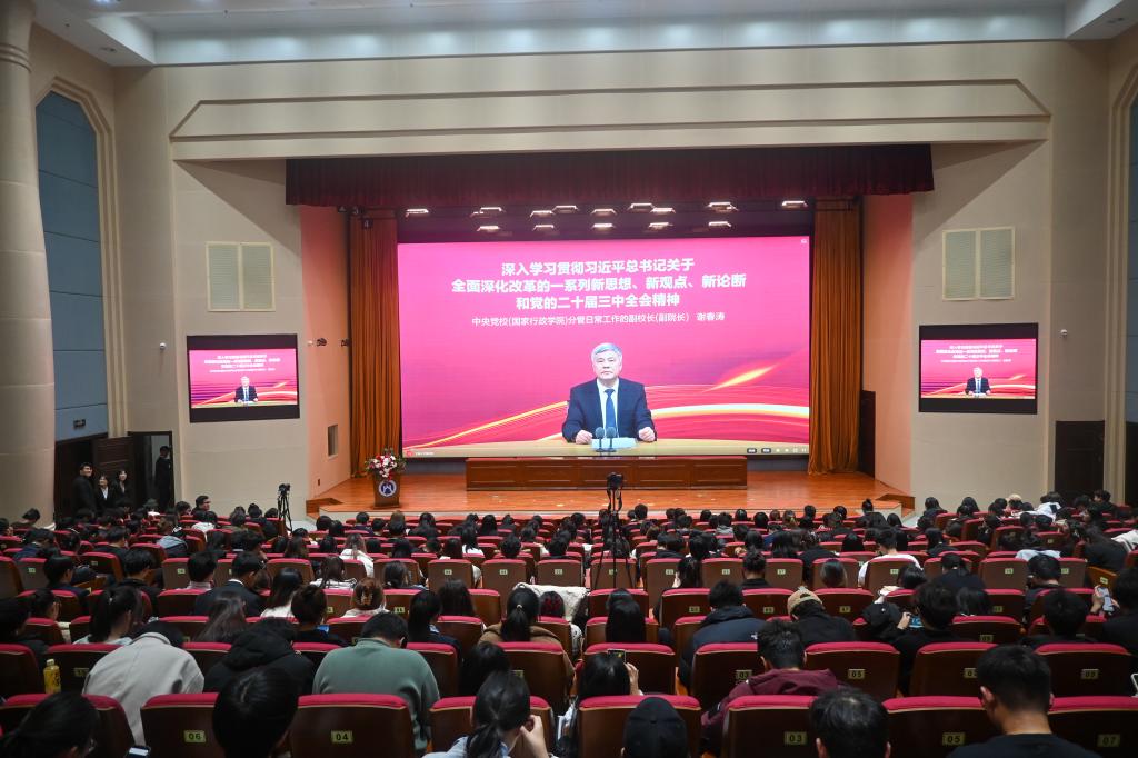 11月28日,管理科学与工程学院组织青年马克思主义培训班学员和学生干部通过视频观看学习由中央党校(国家行政学院)副校长(副院长)谢春涛教授主讲的党的二十届三中全会精神专题报告。