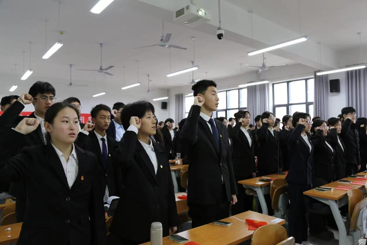李冰封代表学院党委向32名新团员表示祝贺,并向新团员提出希望和要求。一是坚定理想信念,做仰望星空的青年;二是笃学强识砺能,做知行合一的青年;三是涵养品德修为,做明礼诚信的青年;四是筑牢规矩意识,做纯净自律的青年;五是紧贴时代脉搏,做勇于追梦的青年;六是甘于奉献社会,做倡导新风的青年。