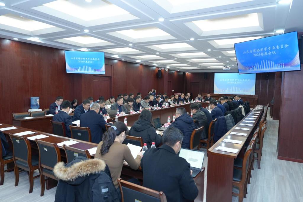 12月28日上午,山东省律师协会刑事专业委员会2024年度会议在山东财经大学法学院模拟法庭召开。山东省律师协会副会长阚吉峰,法学院党委书记刘洪,刑事专业委员会主任孟凡湖,副主任王勇、王国红、王永进、李云峰、温韬、白文刚及各位委员参加会议。会议由孟凡湖主持。
