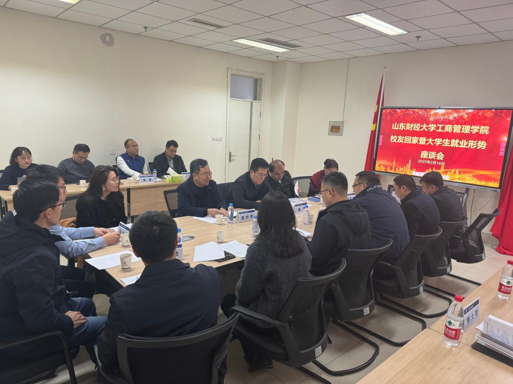 山东航空公司飞行部二大队党总支书记、原人力资源部高级经理王书锋,润华集团人力资源部高级经理于小丽,山东省建行人力资源部高级经理许鸿原,山东纳博士集团副总经理刘国正,山东鲁慈健康体检管理有限公司总经理助理、创始合伙人王智慧,招行济南分行人力资源部总经理助理、团委书记李蓬勃,山东省社会组织总会秘书长马光健,山东峰研教育总经理黄军杰,山东省企业家协会秘书长王文波等校友分别发言。大家围绕新形势新技术、新时代新要求,就如何进行适应经济社会发展新形势的人才培养、校友所在行业发展现状及大学生职业发展定位等一系列问题展开讨论。