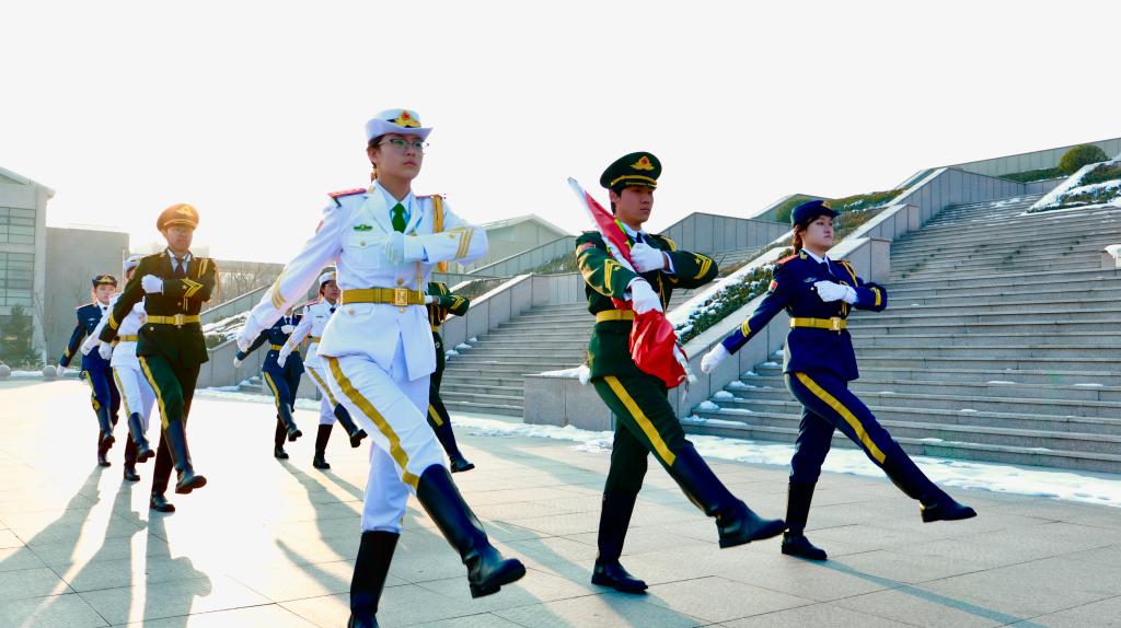 迎着清晨的阳光,国旗护卫队迈着整齐的步伐护送国旗入场。随着国歌奏响,五星红旗在微风中缓缓升起。全体师生肃立,伴随旋律齐声高唱国歌,向徐徐升起的国旗行注目礼。
