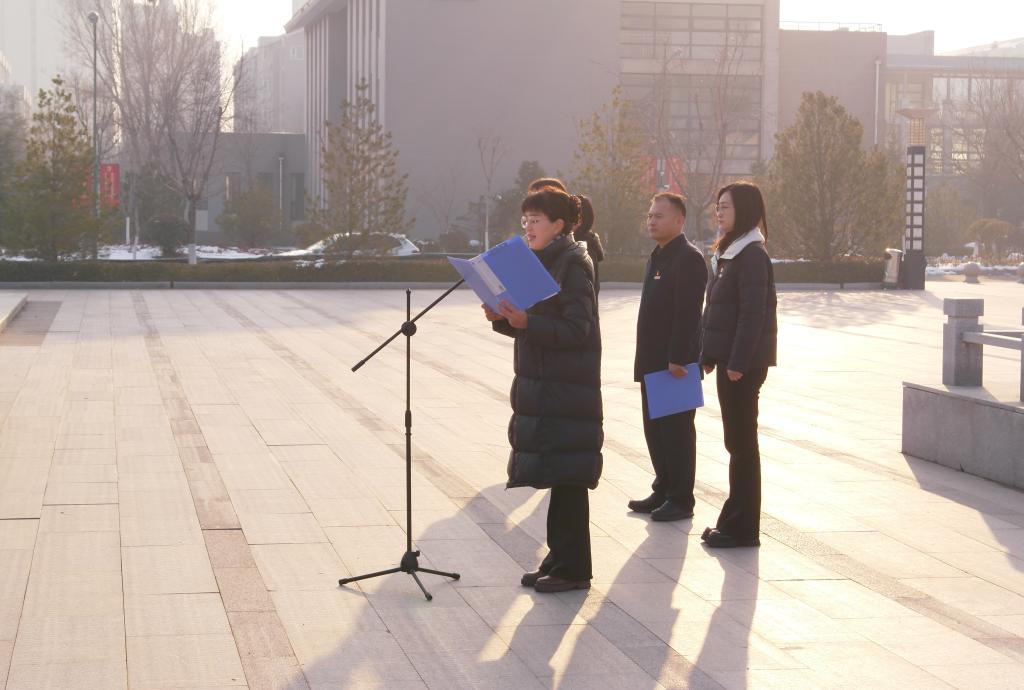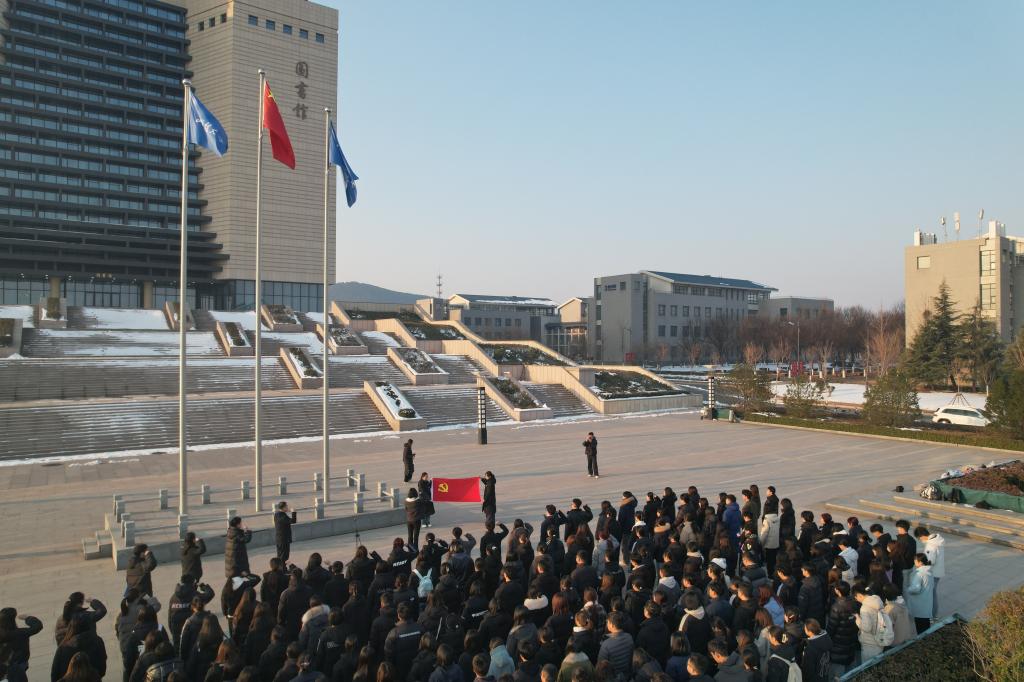 国旗下,财政税务学院辅导员李子云带领现场全体党员重温入党誓词,在雷锋精神的感召下,党员同志们重忆入党初心,践行时代担当。