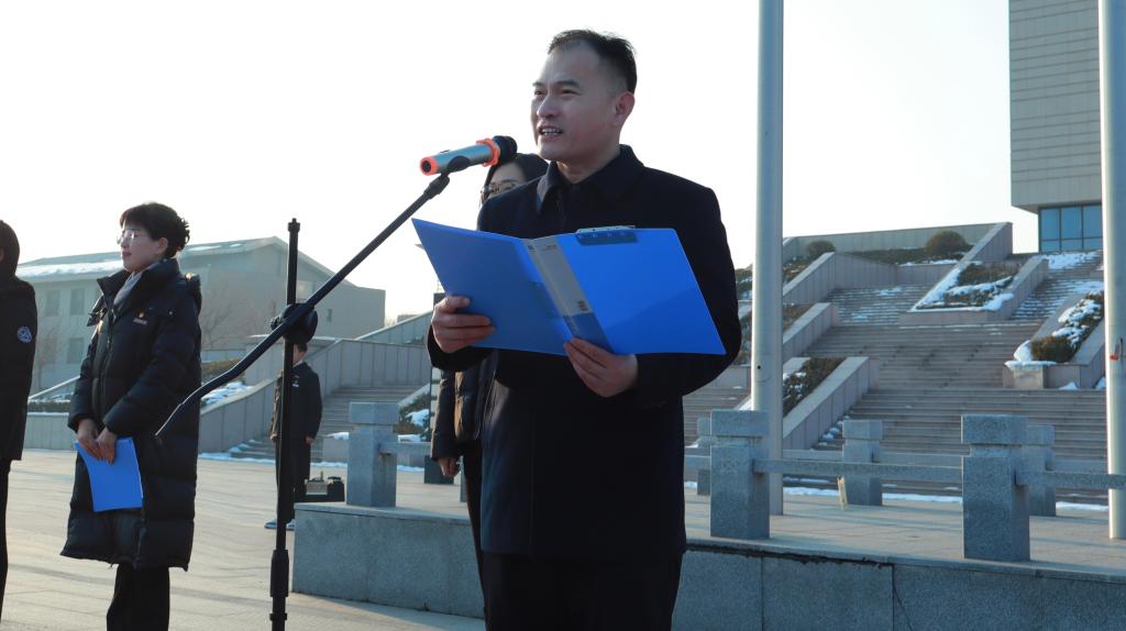 滕晖在主持仪式时号召全体师生将学雷锋活动融入日常、化作经常,以实际行动传承践行新时代雷锋精神。