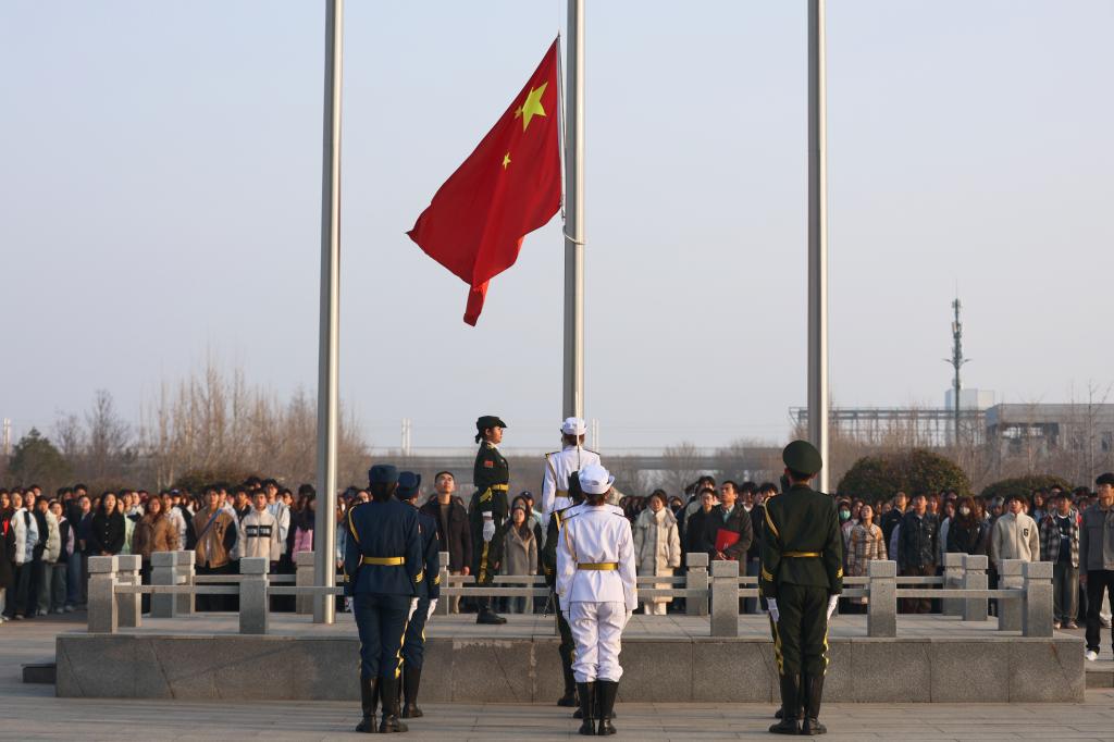 3月10日早上,由金融学院承办的本学期第三周升旗仪式在圣井校区图书馆前举行。金融学院党委副书记李开传、团委书记郭夕熙、2024级辅导员李治坤及2024级本科生参加活动。