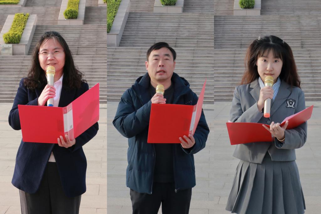 王培信作为教师代表发言。他结合李大钊、赵一曼等榜样事迹,寄语学生:“当今时代的和平与繁荣,离不开先烈们的英勇牺牲与无私奉献。新时代青年当以真才实学报效祖国。课堂上的专注、实验室里的探索、社会实践中的汗水,都是对先烈精神的传承。”