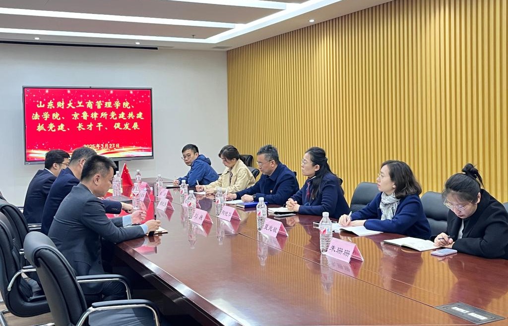 3月27日上午,工商管理学院工商管理系党支部、法学院经贸法学系党支部赴京鲁律师事务所开展主题为“抓党建、长才干、促发展”的党建共建活动。工商管理学院党委书记赵世民、法学院党委副书记陶晓华带队。工商管理系、经贸法学系党支部党员代表参加。京鲁律师事务所党支部书记郝纪勇、轮值主任刘巍、党支部副书记孙京祥、高级合伙人王义松、顾问李浩成及律师王化芬参与座谈。活动由孙京祥主持。