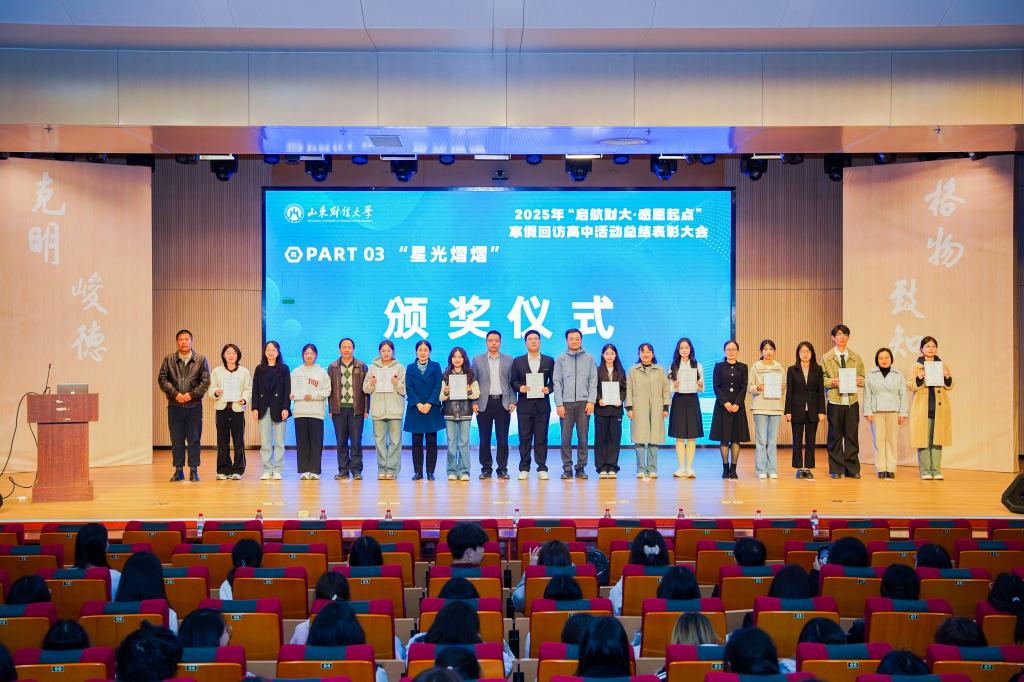 3月27日晚,2025“启航财大·感恩起点”寒假回访高中活动总结表彰大会在章丘校区大学生文化活动中心举行。教务处处长于文广、校团委书记王晓迪出席。会议由教务处副处长、招生办公室主任李亚伟主持。