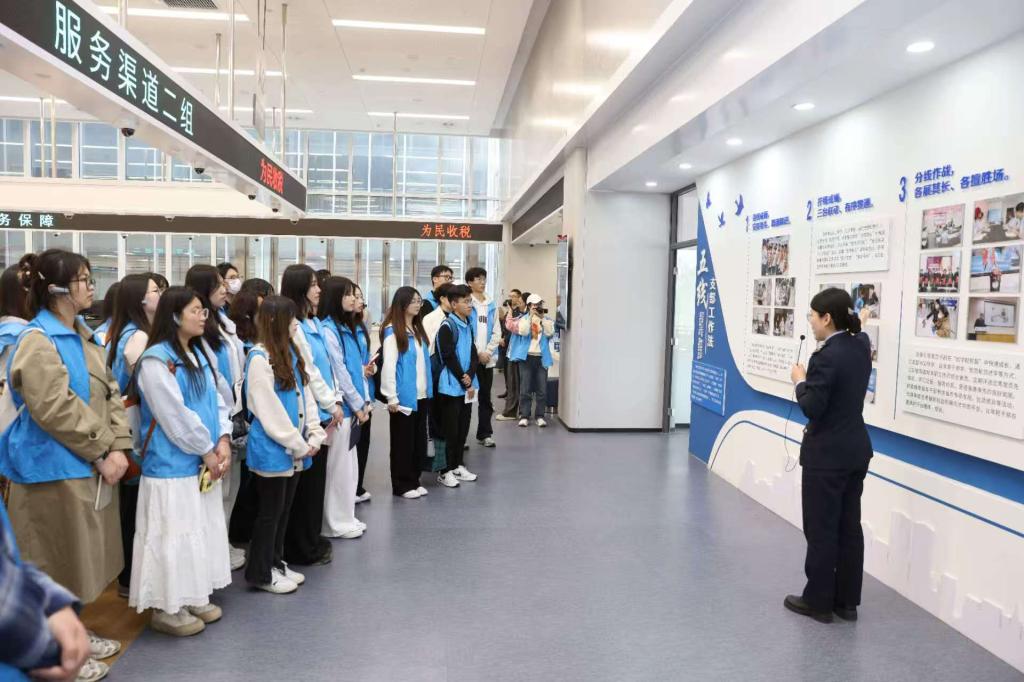 活动伊始,明水税务所税务干部通过微税史馆,向全体师生系统介绍了从建国初期到新时代的税制改革变化。一段段税制发展史,一张张手写申报表,让在场师生深切地感悟到“忠诚担当、崇法守纪、兴税强国”的中国税务精神。第一税务所讲解员带领师生参观办税大厅,介绍导税区、自助办税区、综合业务办理区等分区功能,并进行了相关业务办理的现场示范。