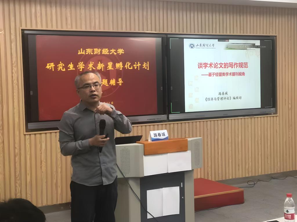 路春城以“谈学术论文的写作规范——基于经管类学术期刊视角”为题,从编审角度详细讲解期刊论文的选题原则、论文写作、论文规范等关键问题与注意事项。专题辅导过程中,他对孵化项目的选题进行逐一分析,对项目论文的题目、摘要、关键词、正文和引用等方面进行具体指导。
