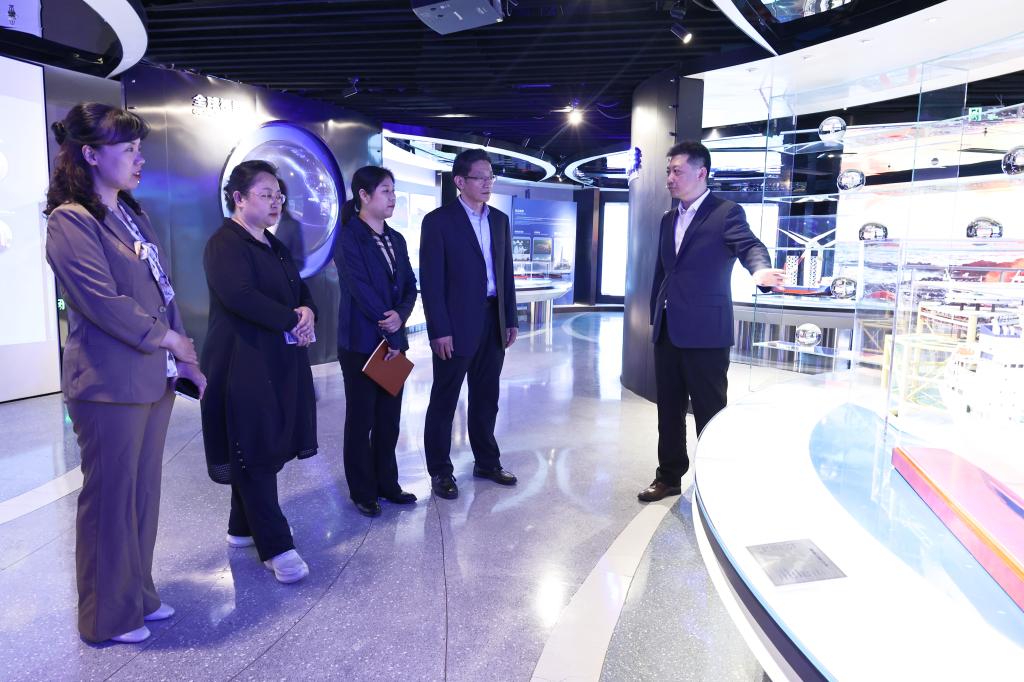 活动伊始,学院一行参观了山东海洋集团的智慧展厅。张磊向大家展示了企业在海洋工程装备、现代海洋产业等领域的创新发展成果。展厅利用先进的科技手段生动呈现了集团的发展历程、业务布局、科技创新以及未来发展战略,让大家对集团有了更深入的了解。