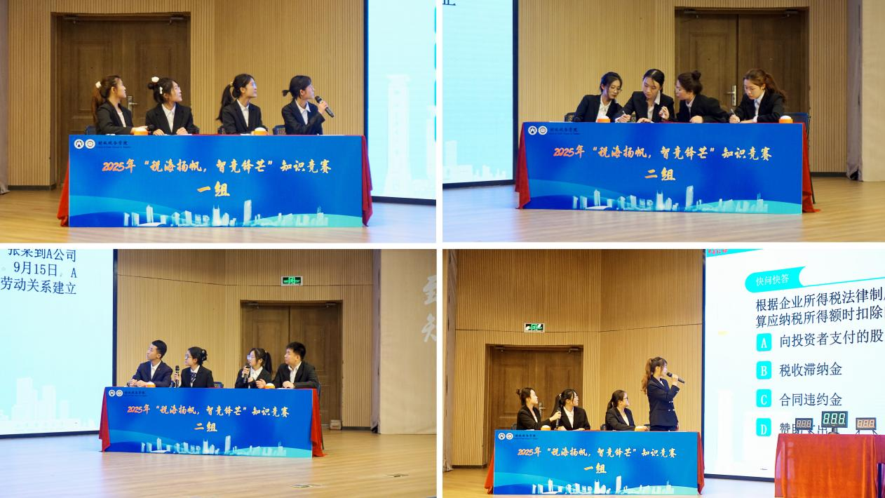 税收知识竞赛决赛有税不可挡队、海底捞队、超级飞侠队、税立方队4支队伍同台竞技。比赛分为快问快答、多选题、不定项选择题、案例分析题四种题型,参赛选手们围绕税法政策、税收实务等内容展开激烈角逐。比赛过程中选手们沉着应答,展现出扎实的税收理论功底、灵活的实务分析能力和团队协作能力。经过紧张的比赛,海底捞队凭借出色表现夺得一等奖,税立方队获得二等奖,税不可挡队、超级飞侠队获得三等奖。领导、老师们为他们颁发证书和奖品。