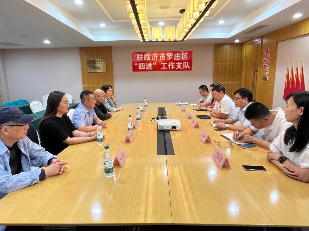 在临沂市罗庄区省派“四进”工作支队驻地,双方进行座谈。支队长张旭详细介绍了支队的工作内容,对我校艺术学院李敬莲同志在“四进”工作期间的表现给予充分肯定。刘宝璋代表艺术学院感谢工作支队对李敬莲同志的关心,要求李敬莲同志进一步提高政治站位,充分发挥专业优势,为地方经济社会发展贡献力量。双方就校企合作、社会服务进行了交流。