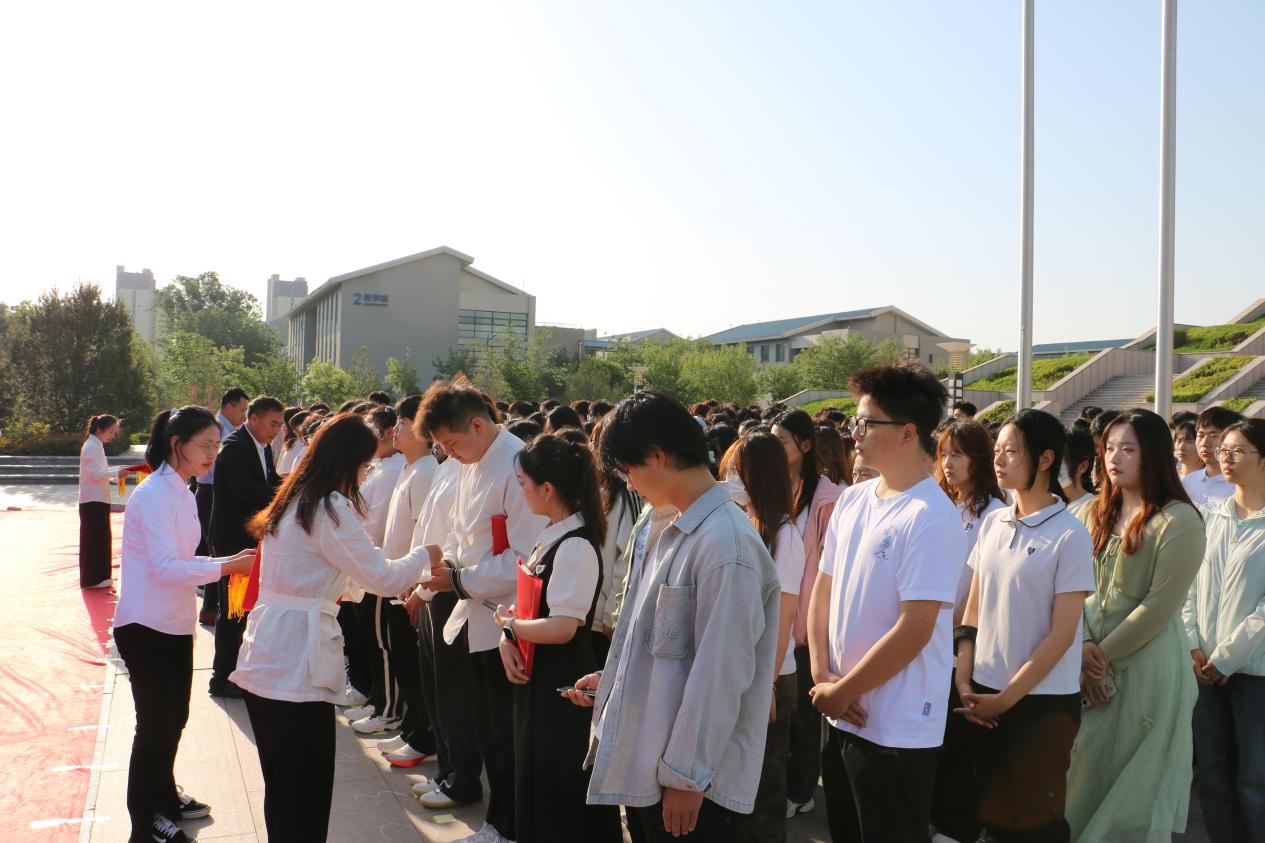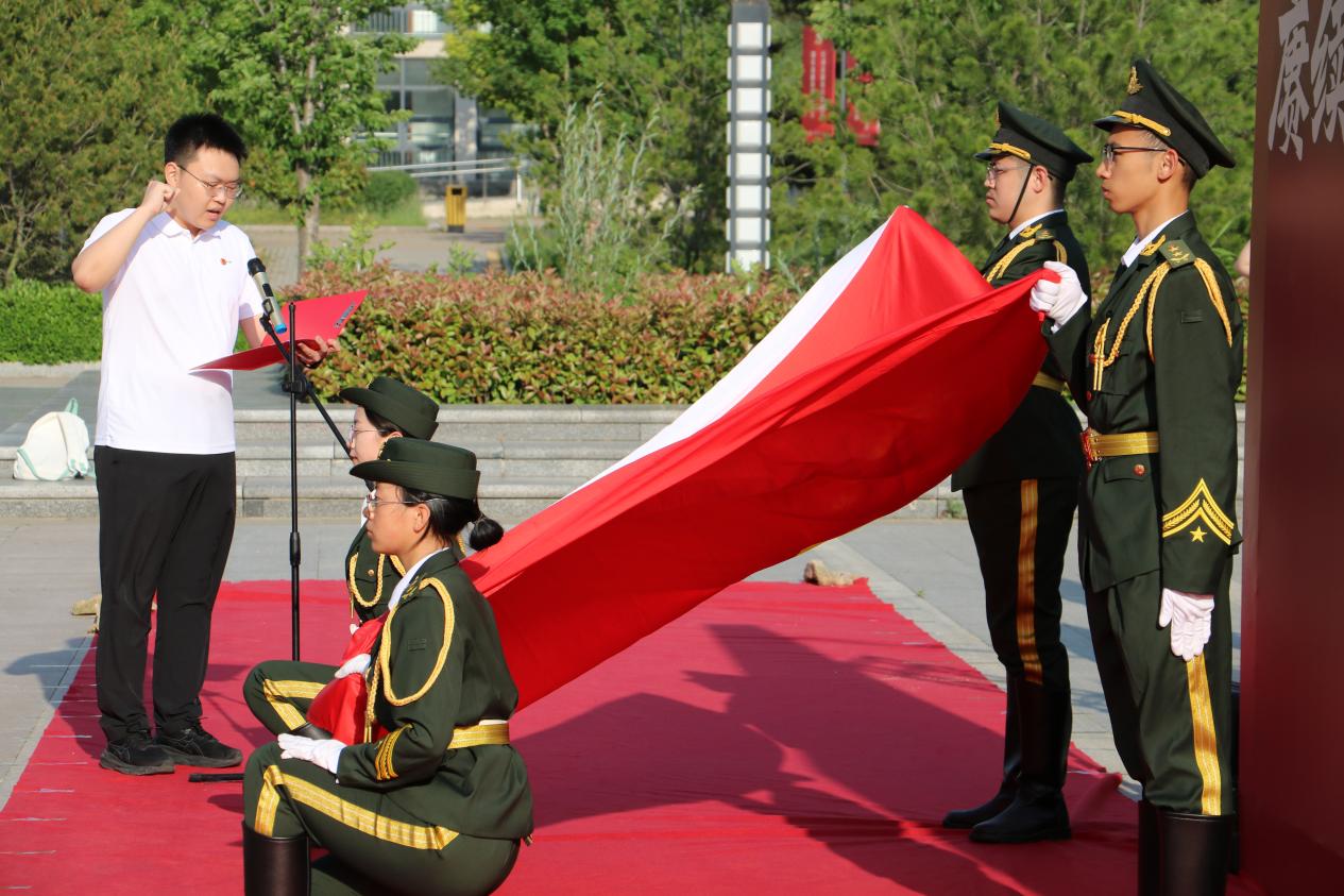 5月12日,由文学与新闻传播学院承办的“赓续五四薪火,青春挺膺担当”主题升旗仪式暨示范性入团仪式在章丘校区图书馆前举行。