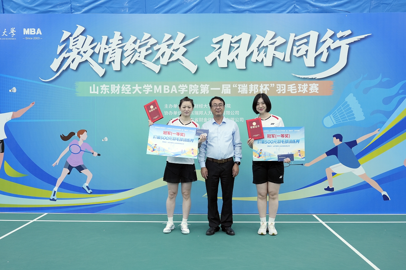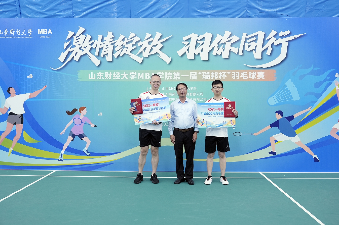 5月17日,由MBA学院主办,山东瑞邦人力资源有限公司、山东省财金信息产业有限公司协办的首届“瑞邦杯”师生羽毛球赛在燕山校区落下帷幕。比赛以“激情绽放、羽你同行”为主题,吸引了40余名MBA校友、在校生、授课教师、学业导师及教职工踊跃参与。副校长赵奎皓,MBA学院党委书记高峰、院长彭留英,山东瑞邦人力资源有限公司总经理狄彦国,山东省财金信息产业有限公司董事长王义辉等嘉宾出席闭幕式,并为获奖队伍颁奖。