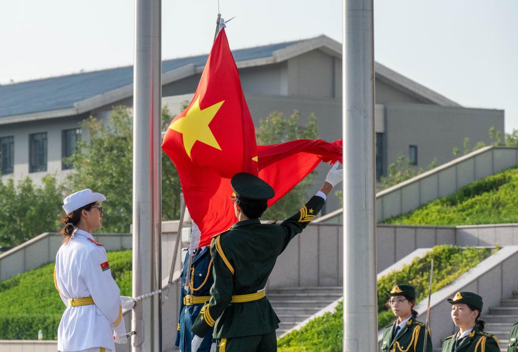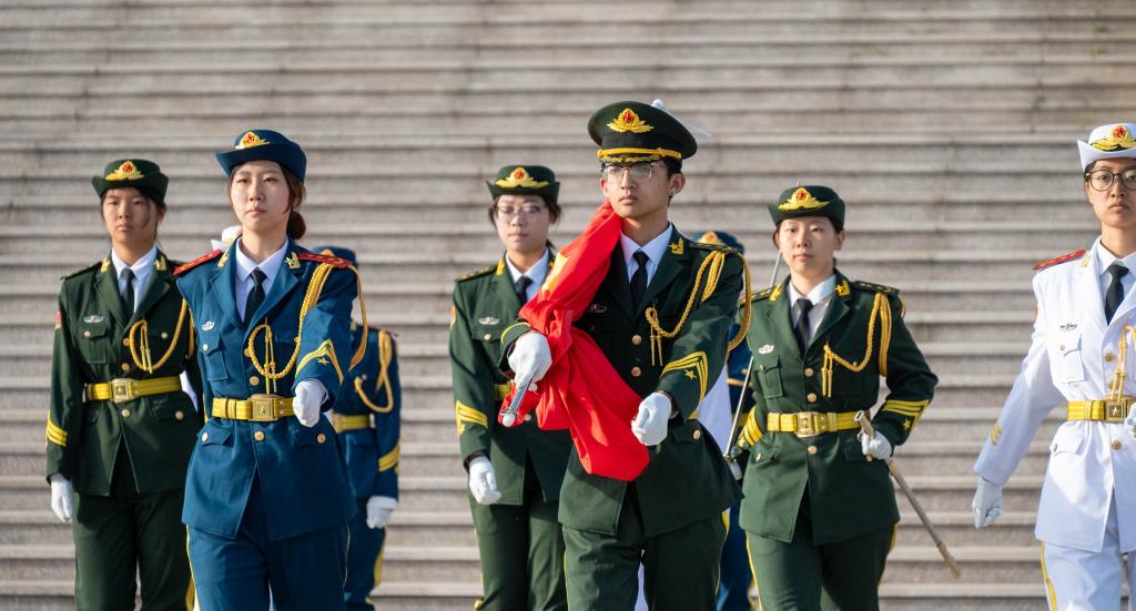 早上七点,学院2024级全体本科生在图书馆前整齐列队,国旗护卫队队员身姿挺拔,迈着整齐有力的步伐护送国旗走向国旗台。随着激昂的国歌声响起,鲜艳的五星红旗在晨曦中缓缓升起,全体师生神情庄重,目光紧紧注视着国旗,齐声高唱国歌,嘹亮的歌声在校园上空回荡,彰显出青春的蓬勃朝气与坚定信念。