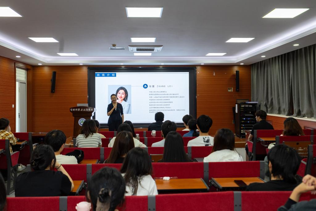 宣讲会上,教育部全国高校毕业生就业能力培训基地讲师张蕾作了精彩分享。她详细介绍了近年来热门地区的留学趋势,并针对不同留学方向的申请要求进行专业解读。结合我校财经类院校的特点,张蕾为参会学生提供了专题留学分析与规划指导,通过实战案例帮助学生明确留学目标。现场互动环节气氛热烈,同学们积极提问,会后多名同学还与宣讲老师进行了深入交流。