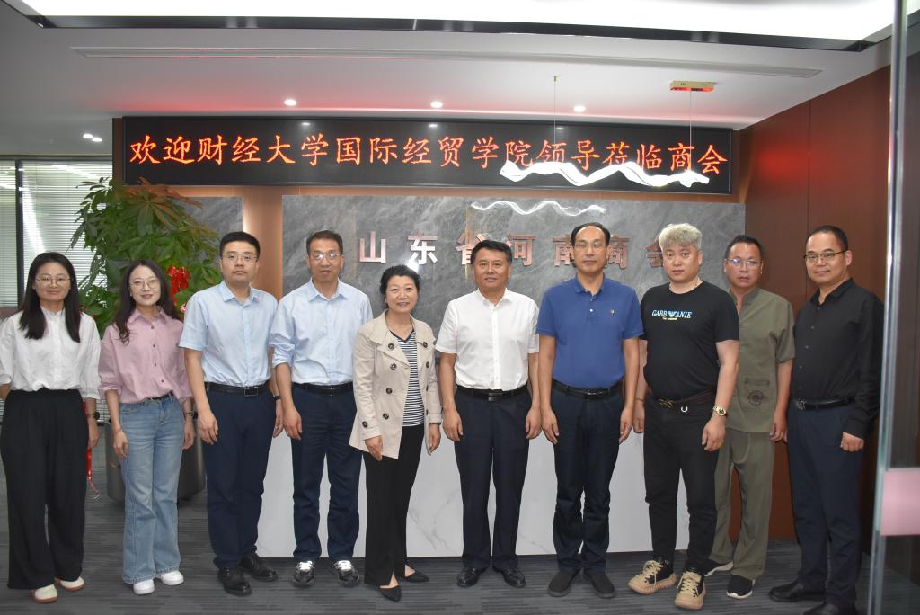 为探索校企合作新模式,进一步拓宽毕业生就业渠道,5月23日下午,国际经贸学院党委书记刘波率队赴山东省河南商会开展调研座谈暨访企拓岗活动。山东省河南商会党支部书记、山东省生态环境企业联合会会长、山东省环境集团有限公司董事长于吉涛,原济南市政协党组成员刘静,商会轮值会长、山东亿卓人力资源服务有限公司董事长凡保生,执行会长、济南德舜企业管理有限公司董事长张凤前和常务副会长、山东乾和投资集团有限公司董事长曲拥军参加座谈。