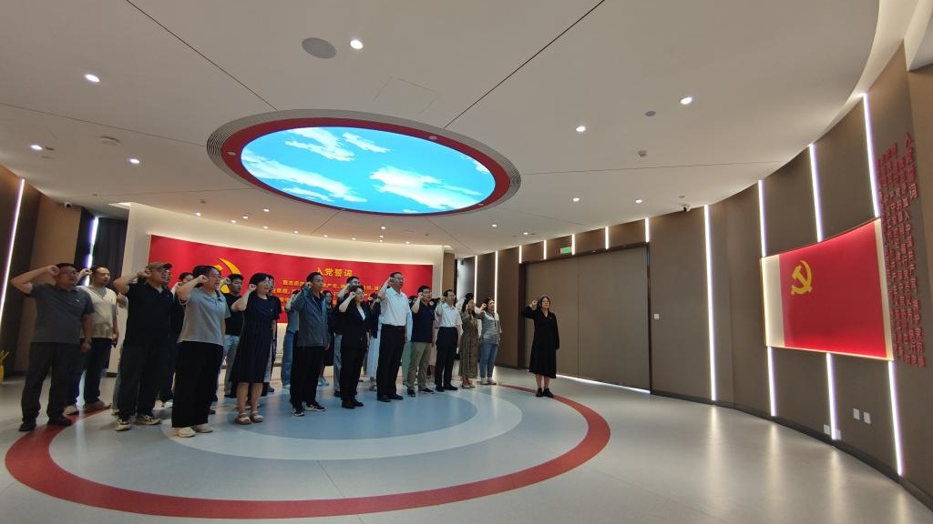 在宣誓厅,全体党员面向党旗重温入党誓词,铿锵有力的誓言在展厅内回荡,彰显着党员们永葆政治本色、践行清廉从教的坚定信念。