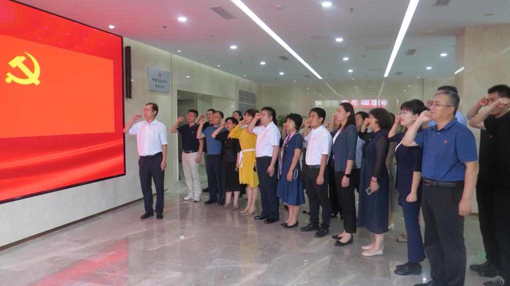 参观结束后,全体党员在税史馆内举行了庄严的重温入党誓词仪式。在发展规划处处长高天云的带领下,大家面对党旗,高举右拳,庄严宣誓。铿锵有力的誓言表达了党员们不忘初心、牢记使命的坚定信念。