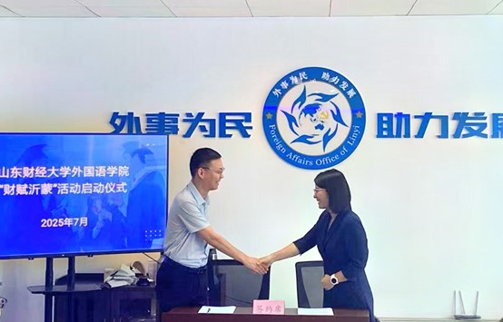 7月14日,外国语学院“财赋沂蒙”项目启动仪式在临沂市行政中心举行。外国语学院党委副书记王恩娟,院长助理、国际语言服务产业学院执行院长张斐瑞,“财赋沂蒙”实习团队全体师生,临沂市贸促会成员,山东财经大学临沂校友会及企业方代表参加启动仪式。