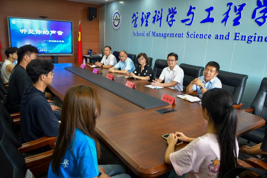 9月2日,管理科学与工程学院“听见你的声音——书记院长茶座”启动仪式暨第一期活动在章丘校区举行。学院党委书记崔东峰,院长刘位龙,党委副书记刘思锋,副院长马建华、王洪海,以及2024级部分学生参加活动。