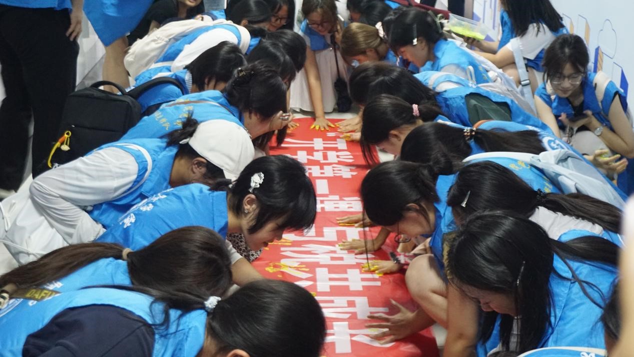最后,税务工作人员与师生共同参观了“税收普法角”,并通过“彩绘手印”互动形式在主题横幅上留下纪念手印。