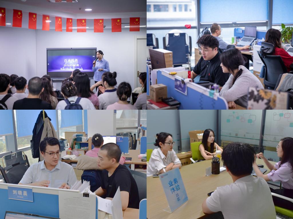 学校一行首先在山东百丞税务服务股份有限公司总经理董华及相关部门负责人的陪同下,实地参观了百丞税务的文化展示区、核心业务办公区和员工休闲空间,全面感知企业自2003年创立以来所积淀的专业实力与企业文化,近距离体会高端税务服务的严谨流程和人文关怀,极大增强了同学们对财税行业职场环境的直观认识。