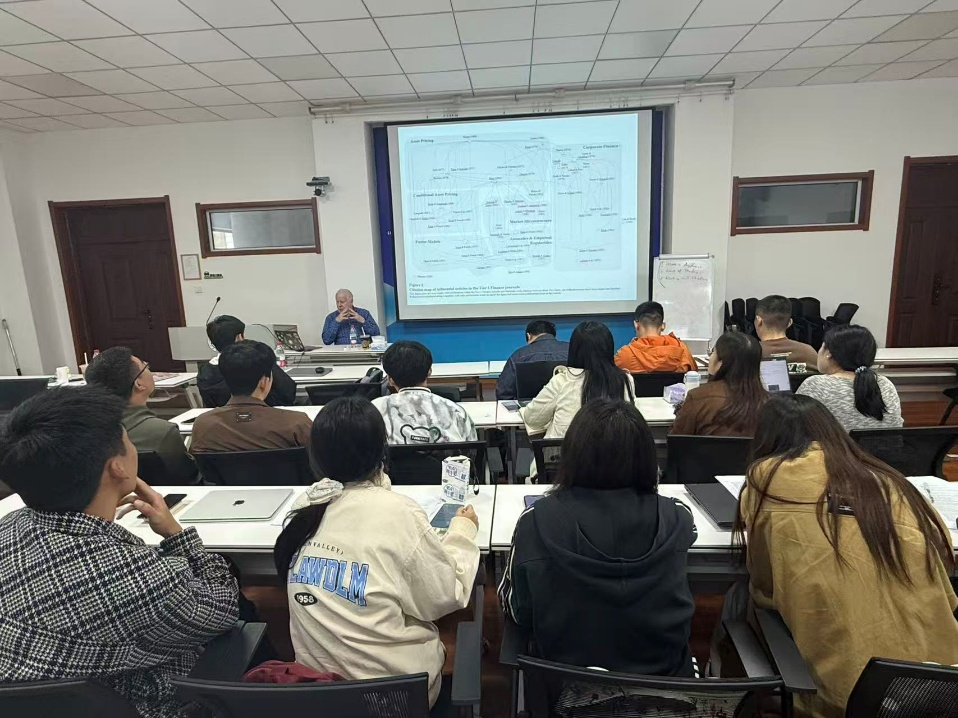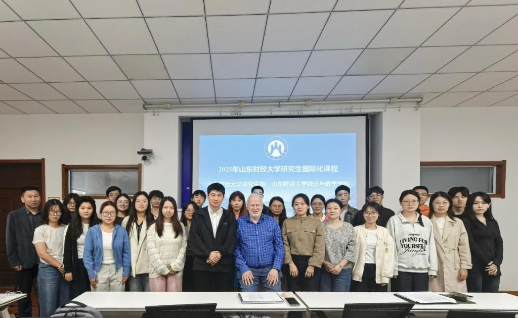 9月23日—24日,山东财经大学2025年研究生国际化课程在舜耕校区成功举办。澳大利亚社会科学院院士、麦考瑞大学应用金融系教授Tom Smith应邀来校授课。统计与数学学院的56名研究生参加学习。